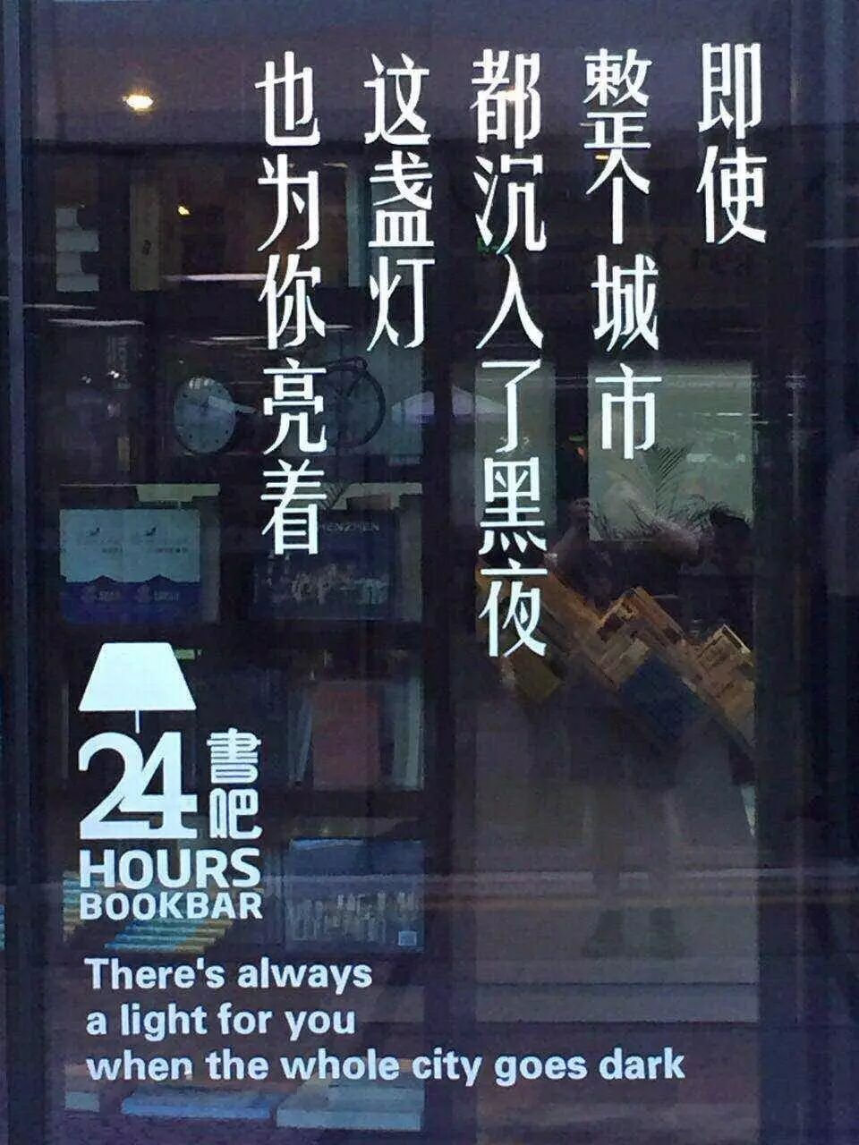 有机会在深圳中心书城,做这样一个“小众,就是未来”的读书分享,亲身感受北区大台阶的魅力和听众人头攒动的热闹情形,面对无数双热情期待的求知眼睛,回答一个又一个充满激情和梦想的创业问题,我觉得,作为一个作者或者说学者,这才是中国的氛围,这才是代表中国未来的城市和人们!中国梦,可以从这里崛起……读书分享会是短暂的,当我和书友们在书吧继续交流探讨已过零点的时候,走过依然三三两两读书的人们,我们走出书屋,凝望着24小时的书吧门口那个闪亮的精致灯箱,我被这句话深深的再一次感动:“即使整个城市都沉入了黑夜,这盏灯,也为你亮着”……