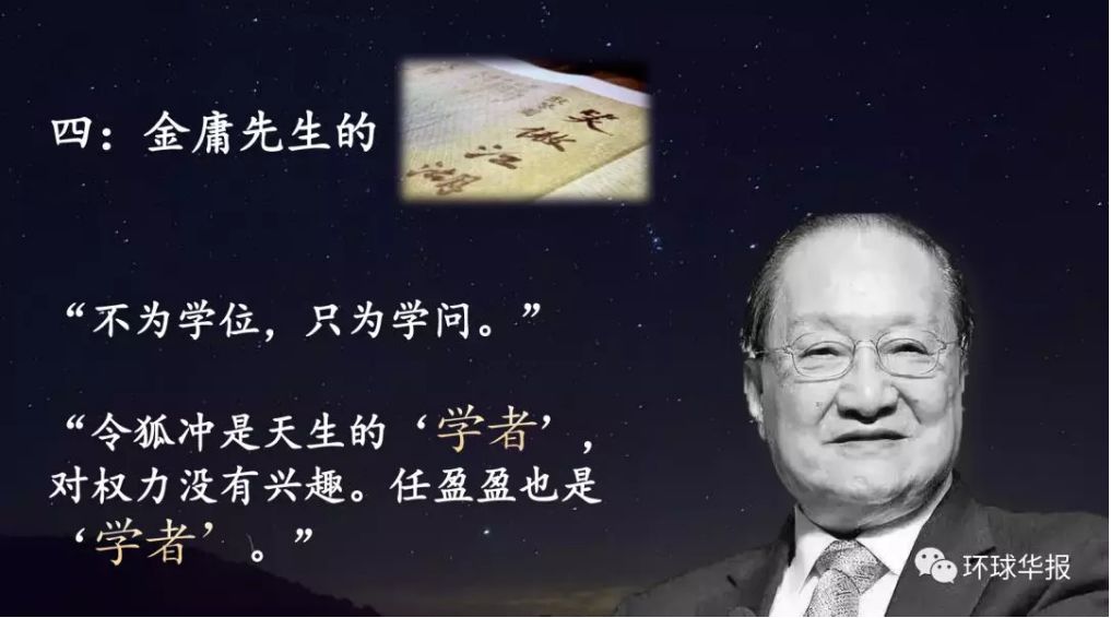 张家卫教授还提到刚刚辞世的金庸先生和徐志摩是表兄弟。金庸先生也曾经在81岁高龄的时候去剑桥大学深造了四年。而金庸先生的:“不为学位,只为学问”就是他的世界观,这个也体现在他写的《笑傲江湖》里。“令狐冲是天生的‘学者’,对权力没有兴趣。任盈盈也是‘学者’。”讲到这里,张教授认为金庸先生都如此,而我们还有什么理由不去学习呢?