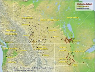 北美哈特公社的分布图(来自于哈特公社的网站)