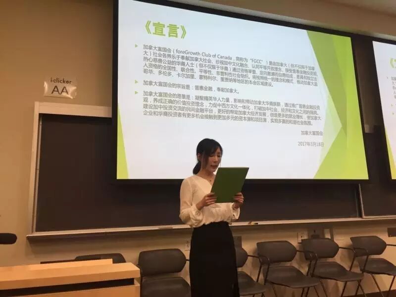 加拿大富国会代表陈琳女士宣读《富国会》宣言